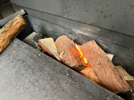 Bouw een luchtig vuur met hout + aanmaakblokjes.